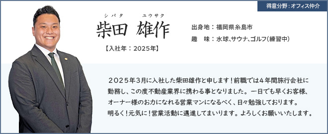 福岡・博多の地域密着型不動産会社「オフィスネットワーク」の人情溢れる営業マンの紹介ページ!