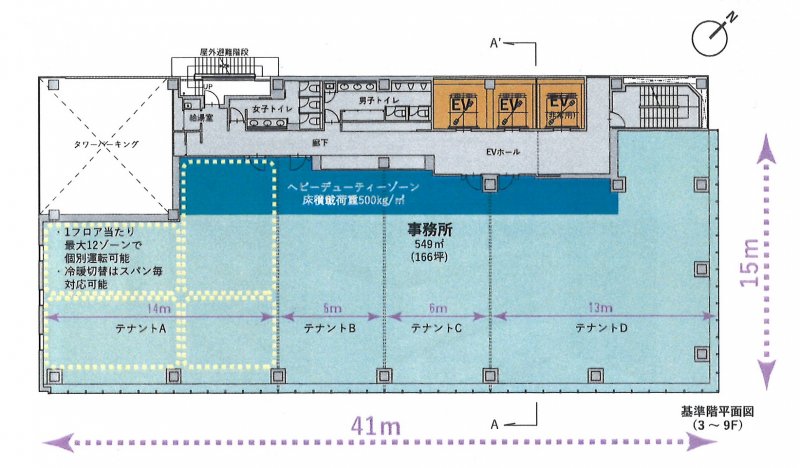 | エレベータ | 乗用15人乗り2基 非常用1基 | 天井高 | 2700mm |