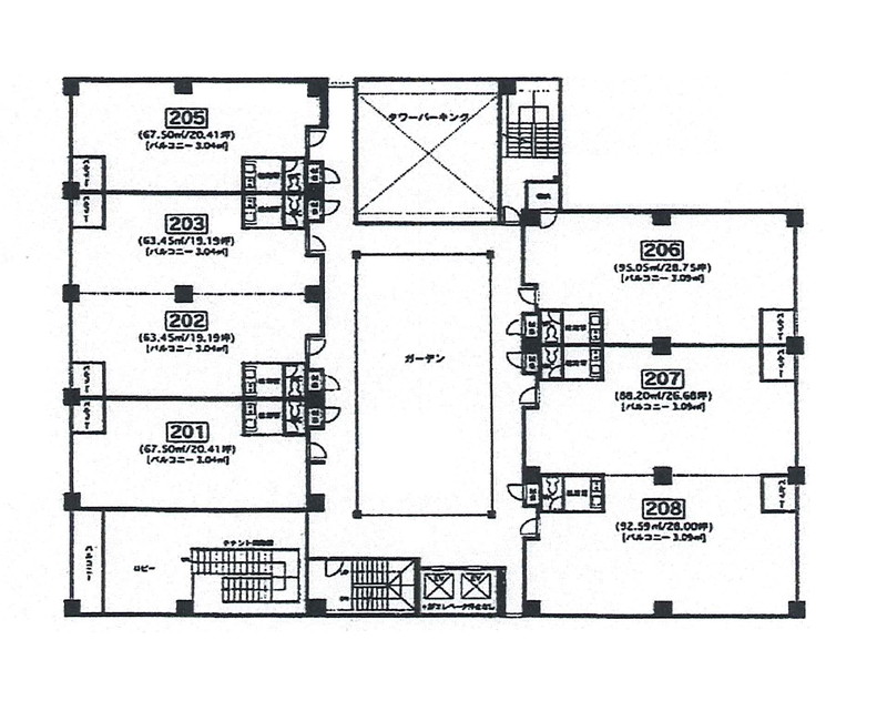 | 面積 | 26.68 坪 ( 88.2m²) | 家賃総額 | 205,436 円(税込) |