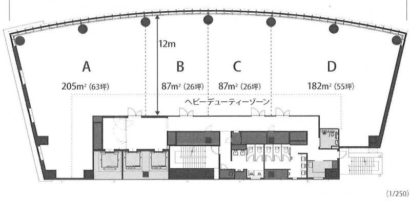 | 備考 | 貸会議室(11階)、リフレッシュゾーン(屋上テラス)、喫煙室(1階)を完備 床:OAフロア(H:100mm)、グリッド式システム天井(H:2800mm) 床荷重:500kg/㎡(ヘビーデューティーゾーン:1,000kg/㎡) Low-E複層ガラスを採用、感染症対策(ウイルス対策)設備導入 ■定借:5年 |