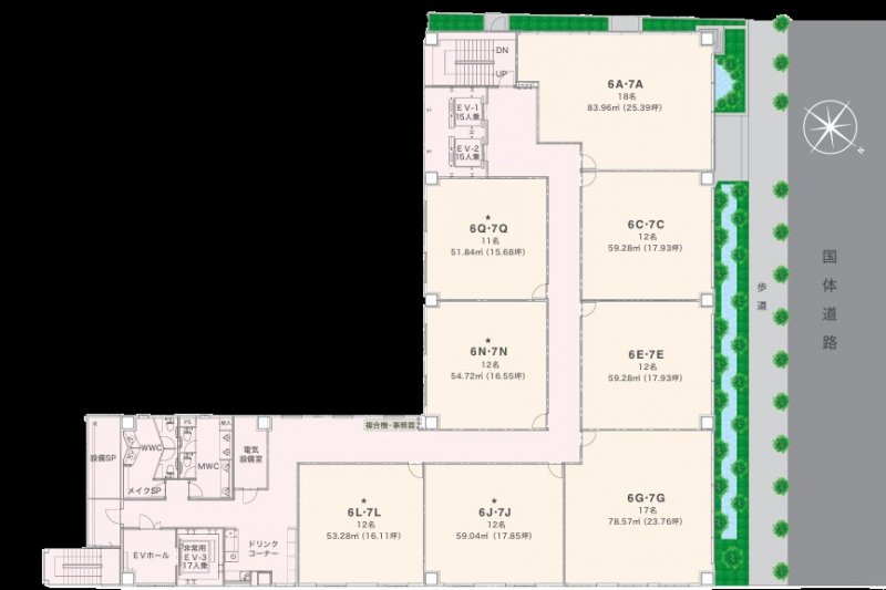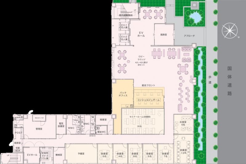 国体道路に面する大型ビル!コンシェルジュ常駐で、個室が広めのサービスオフィスです!
